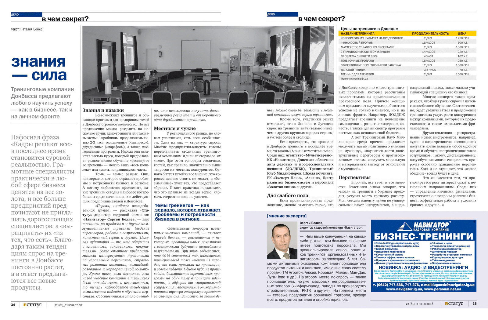 Знание — сила (тренинговый рынок Донбасса), журнал «Статус», 2.06.2008 г. | |||||||||||||||||||||||||||||||||||||||